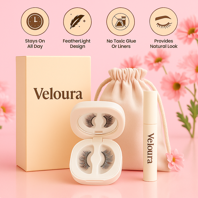 Veloura gives you salon-quality lashes in seconds – glue-free, reusable 300+ times, and featherlight for all-day comfort.